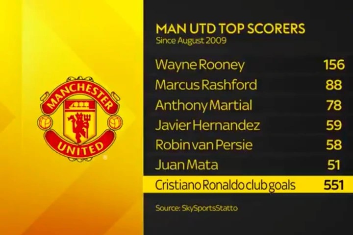 Cristiano Ronaldo left Manchester United in 2008 and the total goals scored in the club is not up to Ronaldo’s goals since he left Old Trafford.